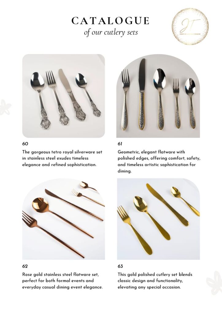 - Customizable & Themed Silverware: Available in unique designs to match your event’s concept and decor.